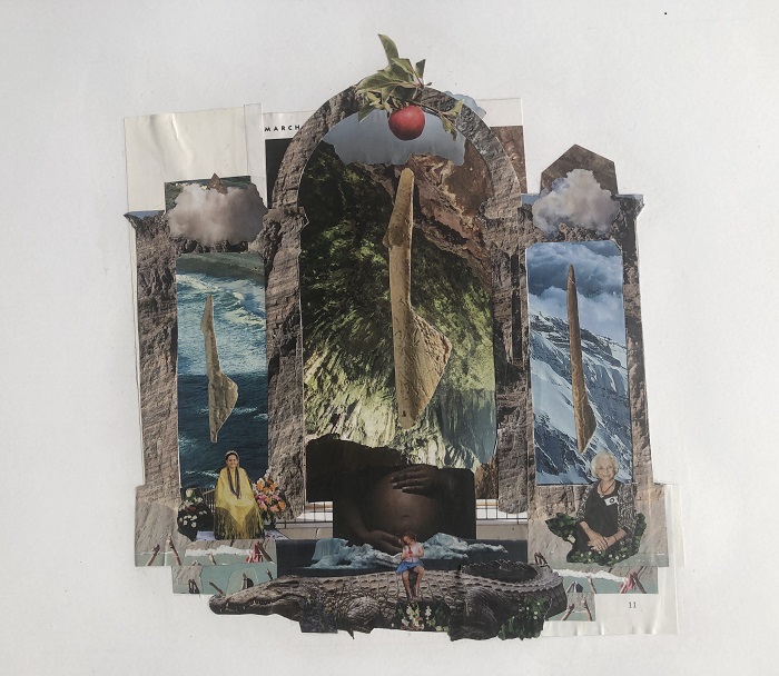 the majority of my art. My current Goddess Series examines feminist spirituality, and my work with my Feminist Agenda series examines the